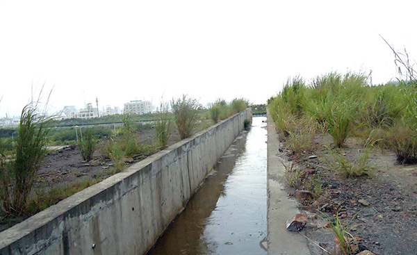 該項目為L1地塊二期、L2地塊場平及配套工程的子項目,位于石化區(qū)東部,石化大道南側(cè),西側(cè)緊鄰濱海十三路,全長1200米,底寬6米;于2010年3月開工,2011年12月竣工驗收。