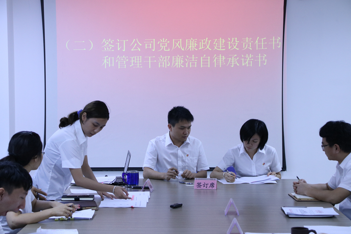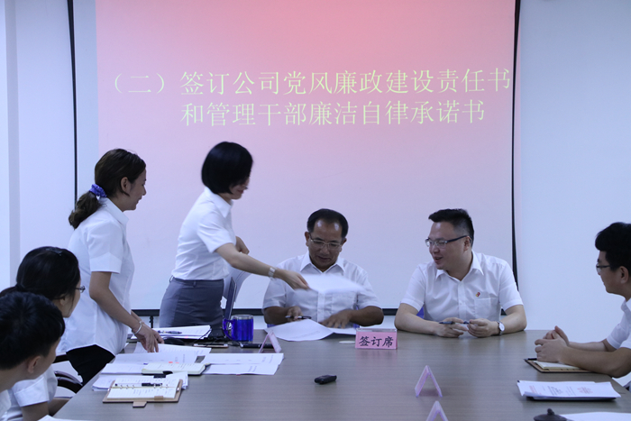 隨后,會(huì)議組織簽訂公司黨風(fēng)廉政建設(shè)責(zé)任書(shū)和管理干部廉潔自律承諾書(shū),由公司總經(jīng)理李彭年分別和公司副總經(jīng)理陳洪喜、溫巍靈簽訂黨風(fēng)廉政建設(shè)責(zé)任書(shū);公司管理層與中層干部分別簽訂了管理干部廉潔自律承諾書(shū);各部門負(fù)責(zé)人分別與工程項(xiàng)目負(fù)責(zé)人、現(xiàn)場(chǎng)主管以及各部門關(guān)鍵崗位從業(yè)人員簽訂廉潔自律承諾書(shū)。