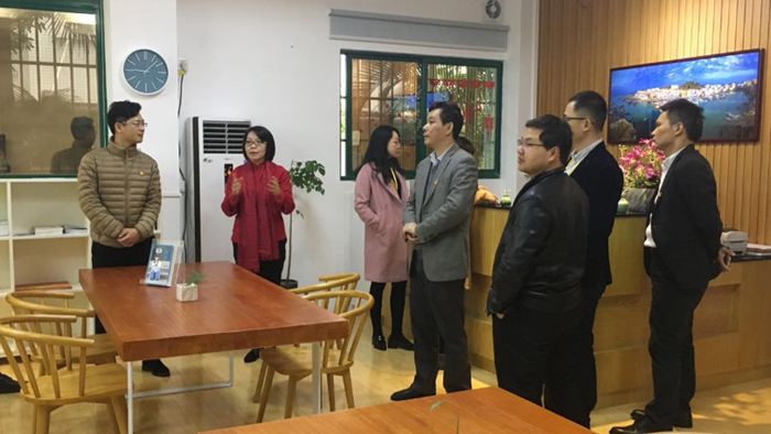 牟冰副局長(zhǎng)為集團(tuán)參觀人員介紹“廉隅書(shū)屋”的建設(shè)和管理情況
