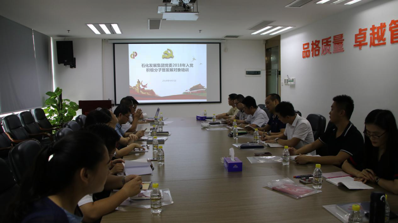 為加強黨的組織建設,使入黨積極分子和發(fā)展黨員對象能夠系統(tǒng)地學習黨的基本知識,正確認識入黨條件以及黨員的義務和權利,進一步端正入黨動機,堅定共產(chǎn)主義理想信念,同時保證新發(fā)展的黨員質(zhì)量,保持黨的先進性和純潔性,根據(jù)《黨章》要求以及有關組織原則,石化發(fā)展集團黨委于2018年9月5-11日舉辦了2場入黨積極分子及發(fā)展黨員對象培訓班活動,共有石化集團黨委所轄的7個黨支部17名入黨積極分子及發(fā)展黨員對象參加了學習培訓。