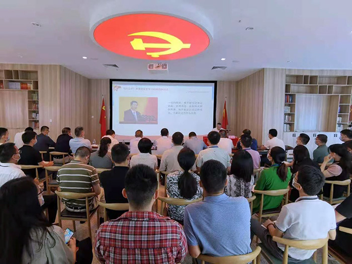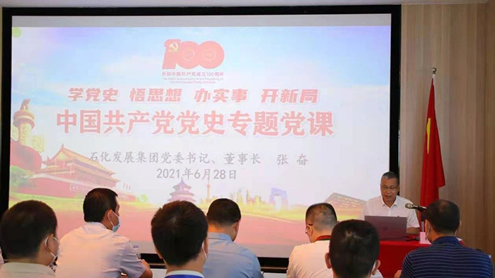 為深入推進石化發(fā)展集團黨史學(xué)習(xí)教育持續(xù)走深走實,以優(yōu)異成績慶祝中國共產(chǎn)黨成立100周年,6月28日下午,石化發(fā)展集團黨委書記、董事長張奮同志以“學(xué)黨史、悟思想、辦實事、開新局,深入學(xué)習(xí)中國共產(chǎn)黨黨史”為題,在集團黨群服務(wù)中心大廳為集團系統(tǒng)黨員干部講授專題黨課。在嚴格做好疫情防控措施情況下,集團全體黨員約60人參加了黨課學(xué)習(xí)。