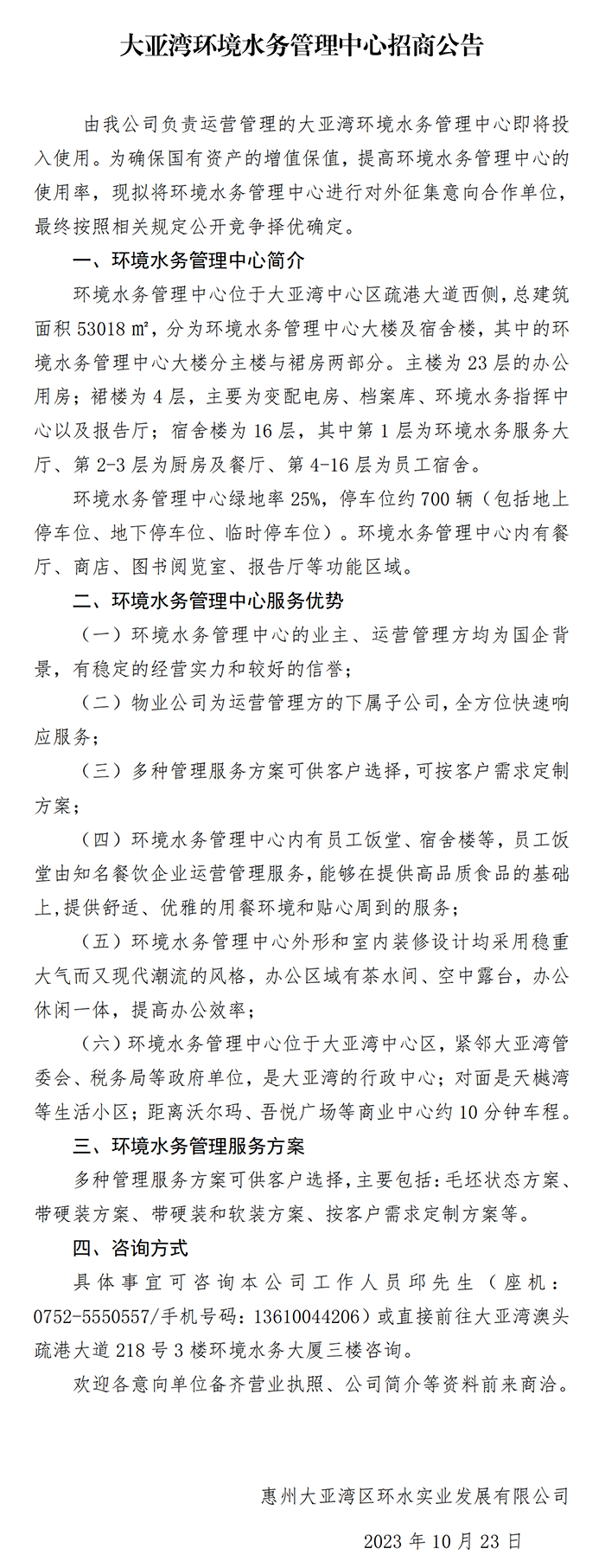 ? 2023 惠州大亞灣環(huán)境水務集團有限公司 ?